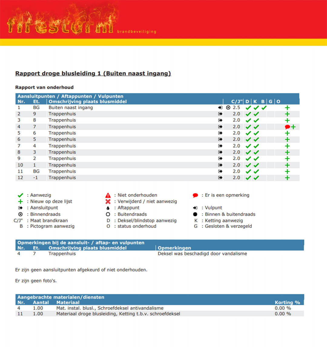 Daarnaast kun je natuurlijk foto's, handtekeningen, opmerkingen, adviezen, nog uit te voeren werk, voorstellen (voor offertes) en gebruikte materialen en adviezen toevoegen.