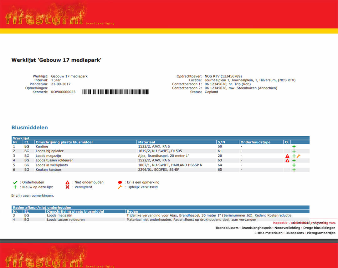 REOBtimaal geeft voor elke blusser een suggestie over het uit te voeren onderhoud aan de hand van de onderhoudsgeschiedenis van het object en de REOB-richtlijnen voor dat type blusser.