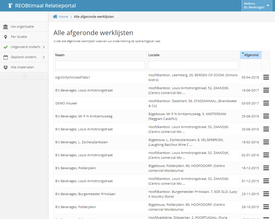 - Het onderhoudsrapport opvragen van huidige of vorige werklijsten
